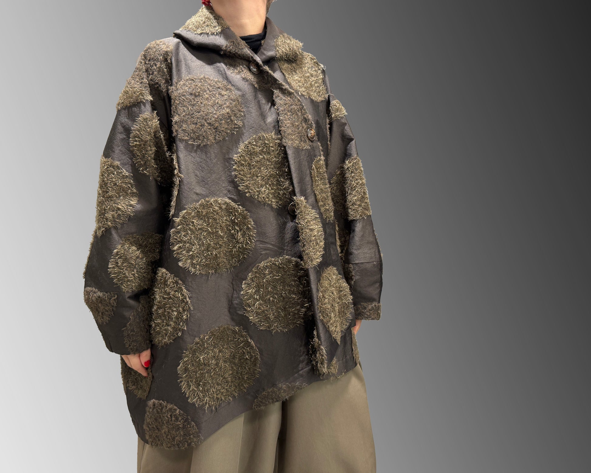 Circular pattern with mixed textures and a soft and fuzzy finish